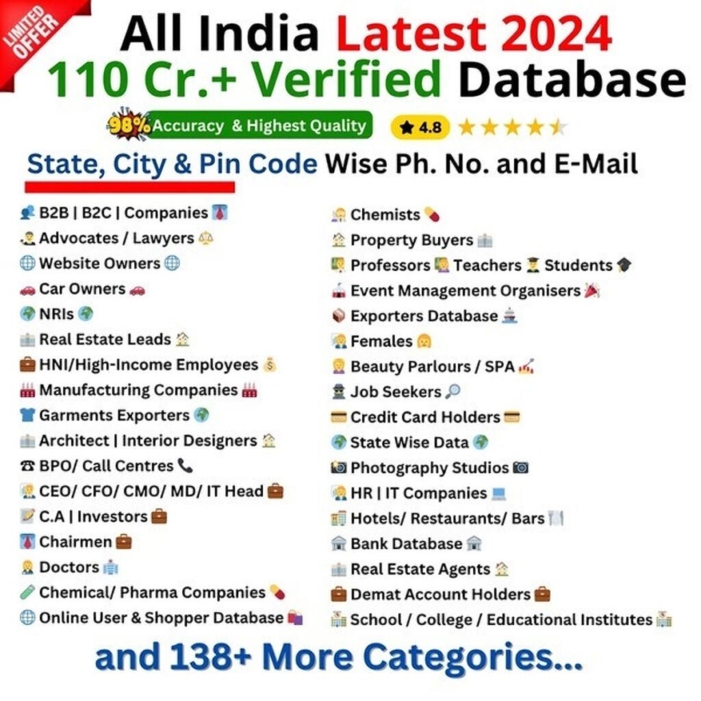 🔥 110 Crore+ Verified Contacts Across 138+ Categories! 🔥